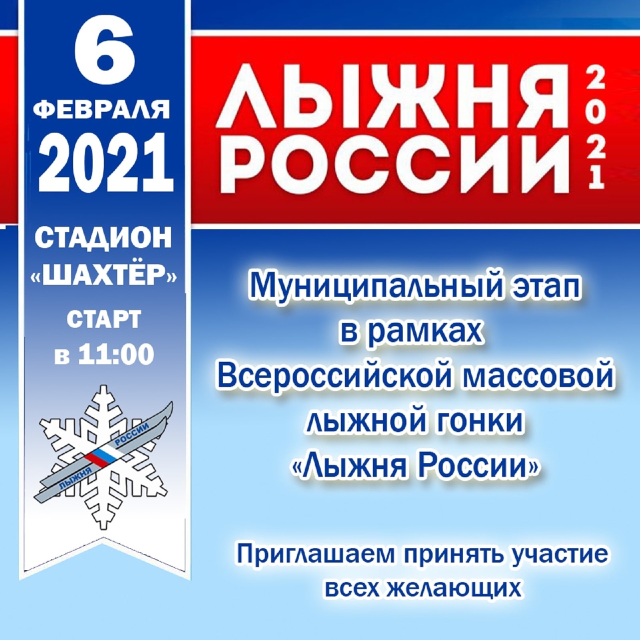 Завтра, 6 февраля, в 11.00 на стадионе "Шахтёр" состоится лыжное состязание "Лыжня России-2021"