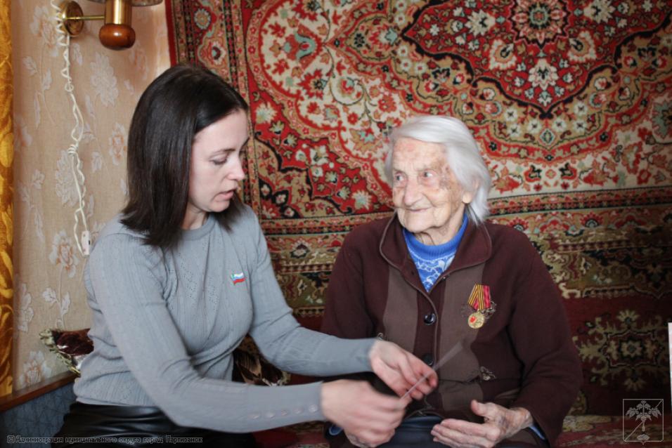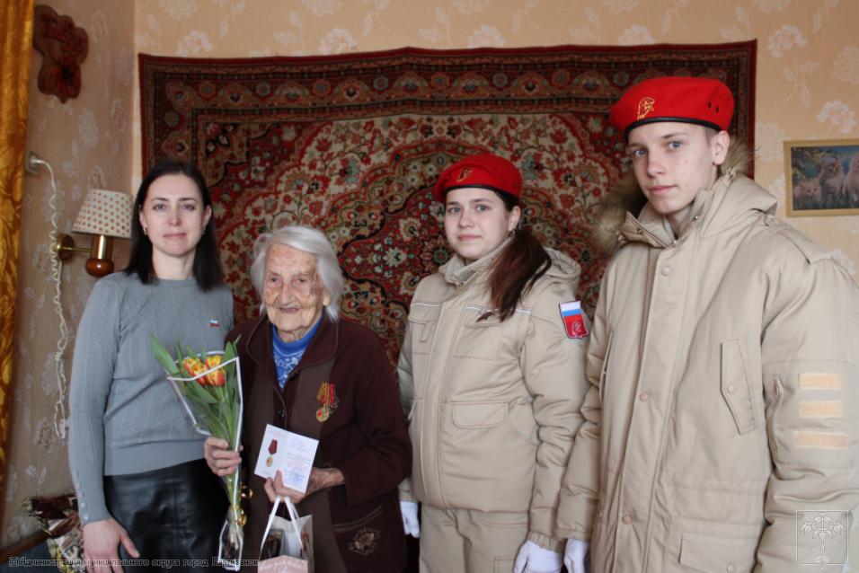 Сегодня медаль, удостоверение к награде, цветы и подарок от главы округа вручали заместитель председателя городской Думы Елена Котикова, а также юнармейцы представители отряда «Адмирал» образовательного центра «Гармония» Полина Гончарук и Тимофей Мотор.