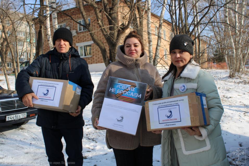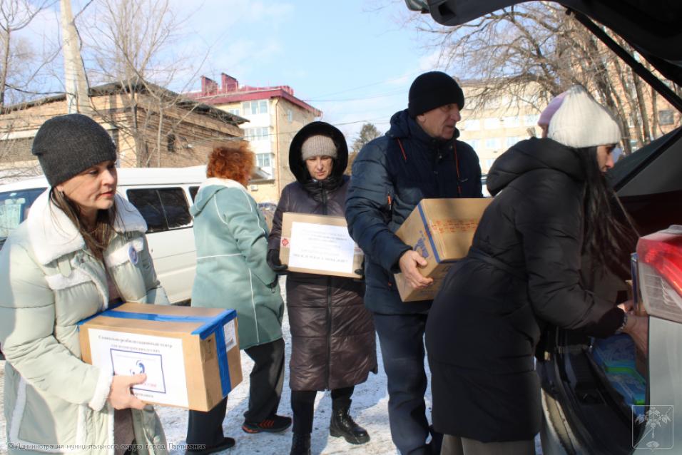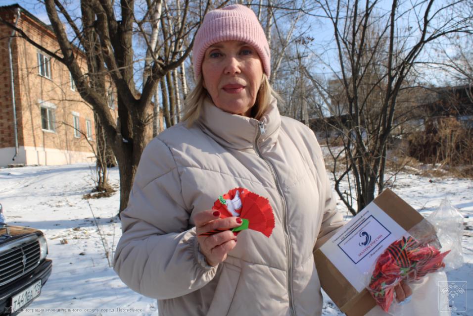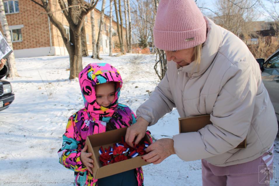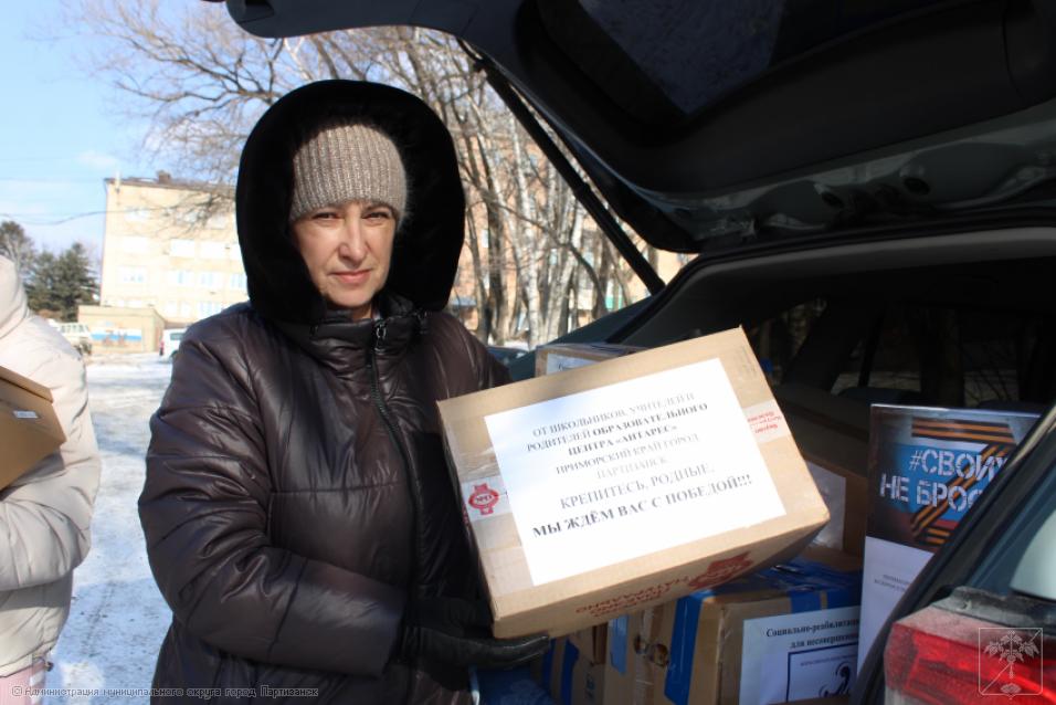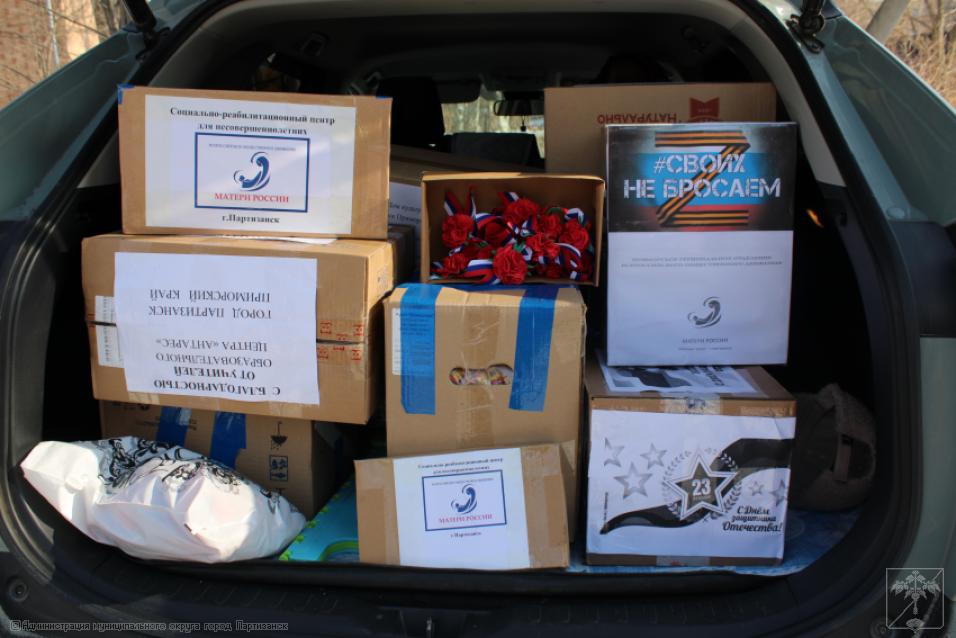 Как всегда, к этому событию готовились тщательно, с большой любовью и уважением к нашим защитникам. В этом важнейшем мероприятии участвовали учреждения образования и культуры городского округа, а также социально-реабилитационный центр. Впереди праздник – День защитника Отечества, поэтому несли не только подарки, сувениры, сладости, витамины, теплые носки и перчатки бойцам, но еще красивыми гвоздиками украшали георгиевские ленточки.