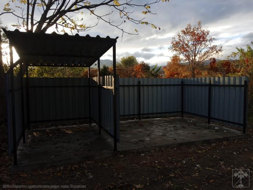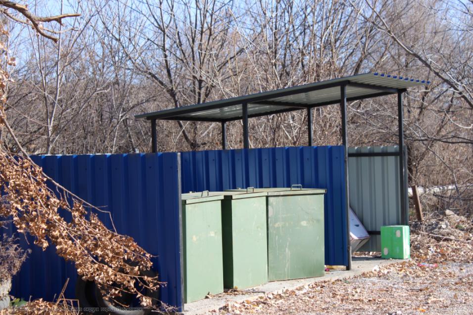 Обустроено четыре мусорных площадки с мусорными баками (по 3 на каждой площадки) и с крытыми коробами для сбора крупногабаритного мусора.