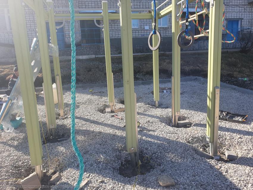Оборудована спортивная площадка с резиновым покрытием и установлен спортивный комплекс.